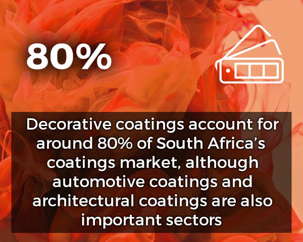 Africa’s emerging coatings markets is well-established and South Africa is among the largest and most influential of these markets. Producing around 324,000 litres of paint per year, with a value of approximately $947 million, the country’s thriving paint industry is home to around 320 coatings manufacturers and is dominated by the decorative paint segment, although it is also an attractive market for the automotive and architectural coatings industries.